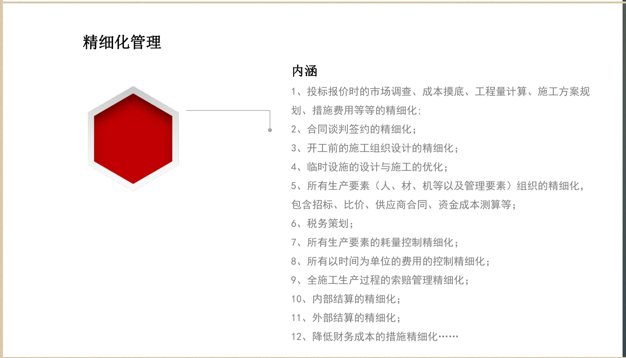 近年来,受建筑市场大环境影响,民营建筑企业形势愈加严峻,为在逆境中求突破,于发展中开新局,今年年初,马总在公司项目管理工作会议上着重强调了推行精细化管理的重要性及必要性。面对急剧增涨的劳务成本,面对劳务人员青黄不接的大环境,更要面对工程施工领域的高额耗资,我们必须摒弃已经习惯了的大手大脚、粗放式管理,坚定不移地推行精细化管理。